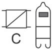 На электрической схеме, светорегуляторе, трансформаторе или самой лампе данный тип нагрузки может обозначаться символом С (в редких случаях TE - trailing edge) или одной из следующих пиктограмм: