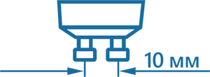 GU10 – штырьковый цоколь. Расстояние между центрами штырьков – 10мм. Имеет утолщения на концах контактов для поворотного соединения с патроном. Лампы с таким типом цоколя чаще всего используются в потолочном и дизайнерском освещении.