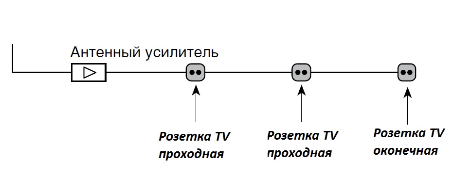 Проходные - применяются, когда нужно установить несколько телевизоров. К такой TV-розетке подключают два кабеля: через один сигнал приходит, через второй — идет дальше к следующему телеприемнику.