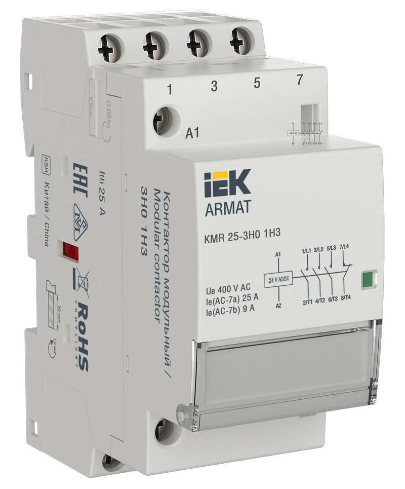 • Реле напряжения с контролем тока 1P+N KARAT, 1НО, 25А, 220В AC