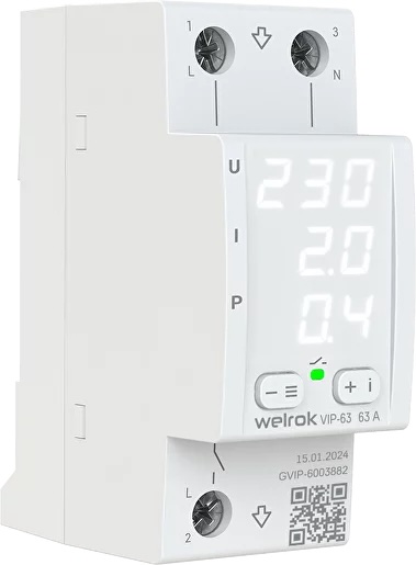• Реле напряжения с контролем тока 1P+N KARAT, 1НО, 63А, 220В AC