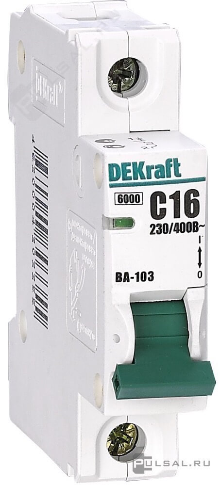 • Автоматический выключатель ВА-103, 1+N полюс, 16А, D, 4, 5 кА