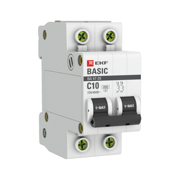 Автоматический выключатель ВА 47-29 BASIC, 2 полюса, 10А, C, 4,5 кА