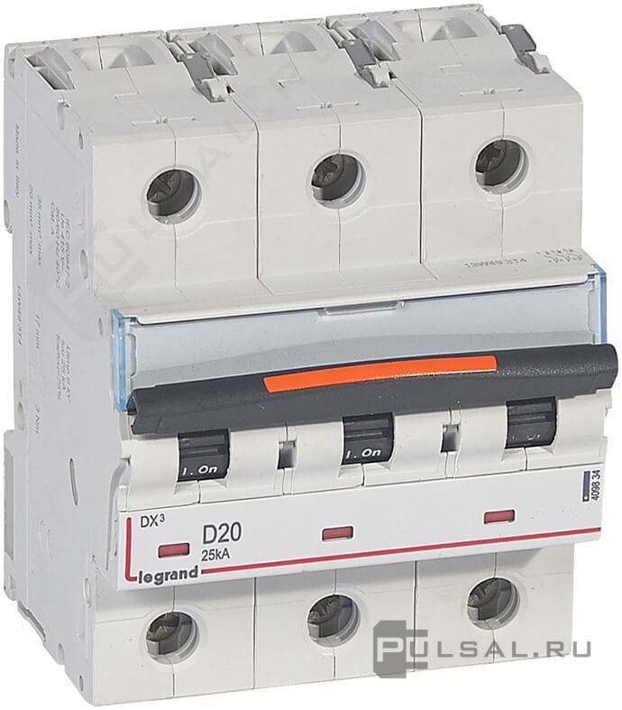 Автоматический выключатель DX³, 3 полюса, 20А, D, 25 кА