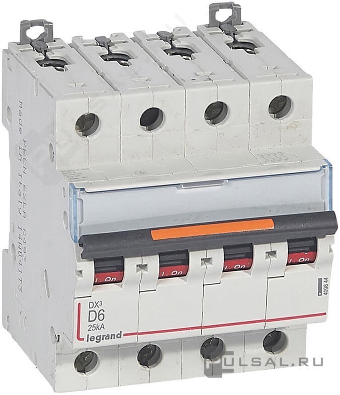 Автоматический выключатель DX³, 4 полюса, 6А, D, 25 кА