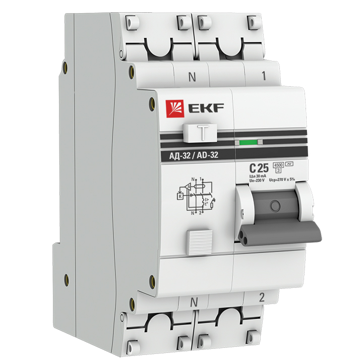 Автоматический выключатель дифференциального тока АД-32 PROxima, 1+N полюс, 25А, C, 4,5 кА, тип - AC,