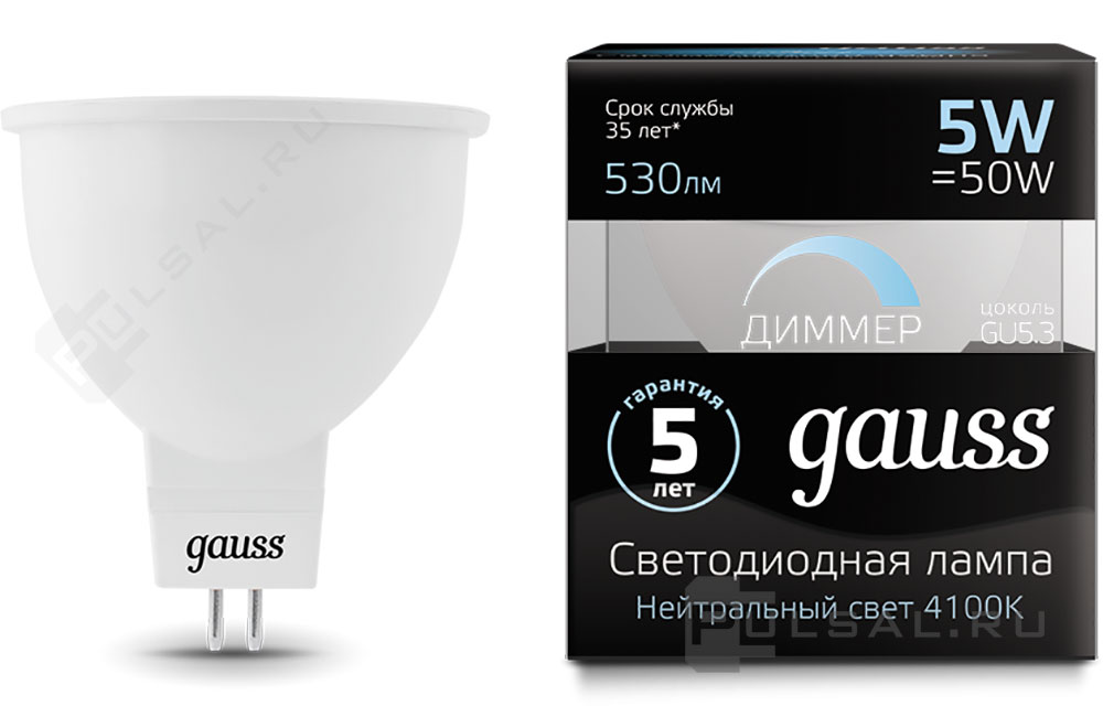 Black, цоколь - GU5.3, мощность - 5Вт, световой поток - 530Лм, цветовая температура - 4100К, не диммируется, 101505205, Gauss