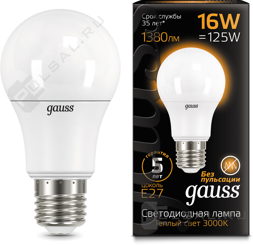 Black, цоколь - E27, мощность - 16Вт, световой поток - 1360Лм, цветовая температура - 3000К, не диммируется, 105102116, Gauss