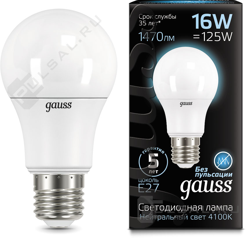 Elementary, цоколь - E27, мощность - 12Вт, световой поток - 1150Лм, цветовая температура - 4100К, не диммируется, 23222, Gauss