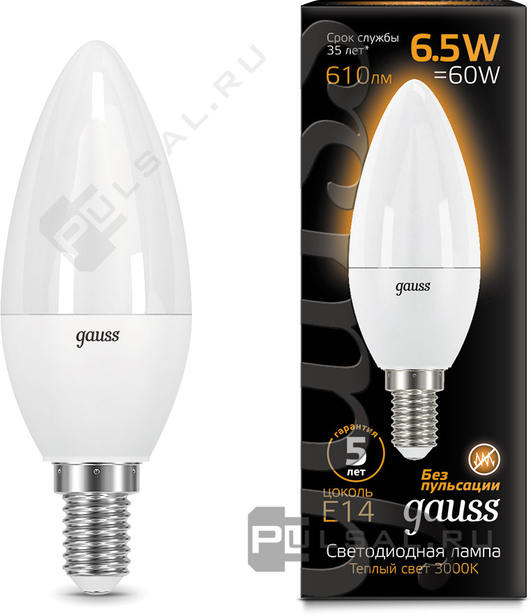 Black, цоколь - E14, мощность - 9.5Вт, световой поток - 890Лм, цветовая температура - 3000К, не диммируется, 104101110, Gauss