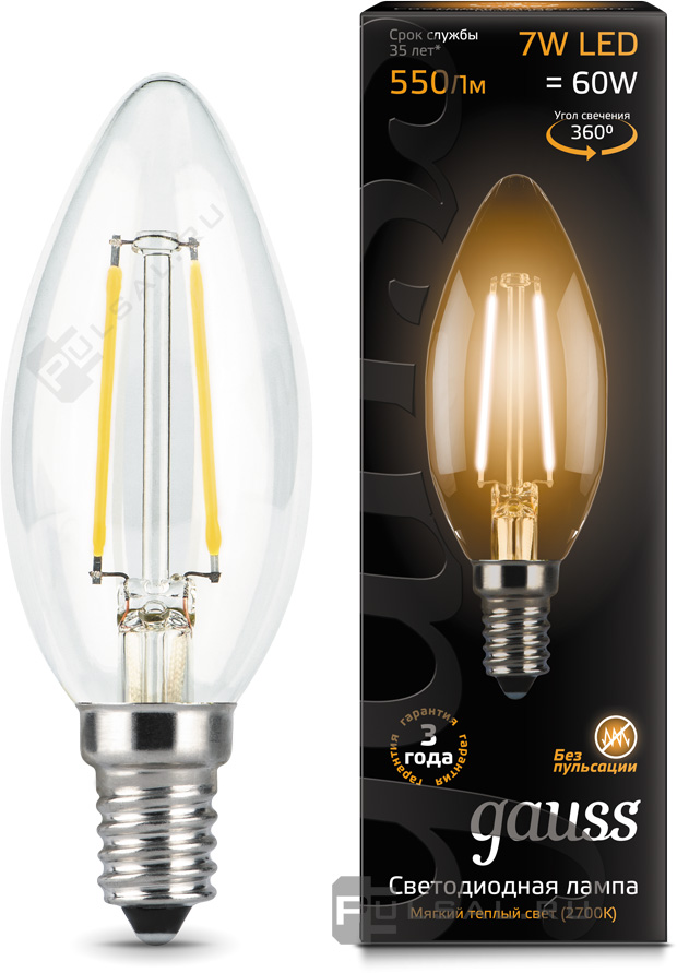Black, цоколь - E14, мощность - 5Вт, световой поток - 420Лм, цветовая температура - 2700К, не диммируемая, 103801105P, Gauss