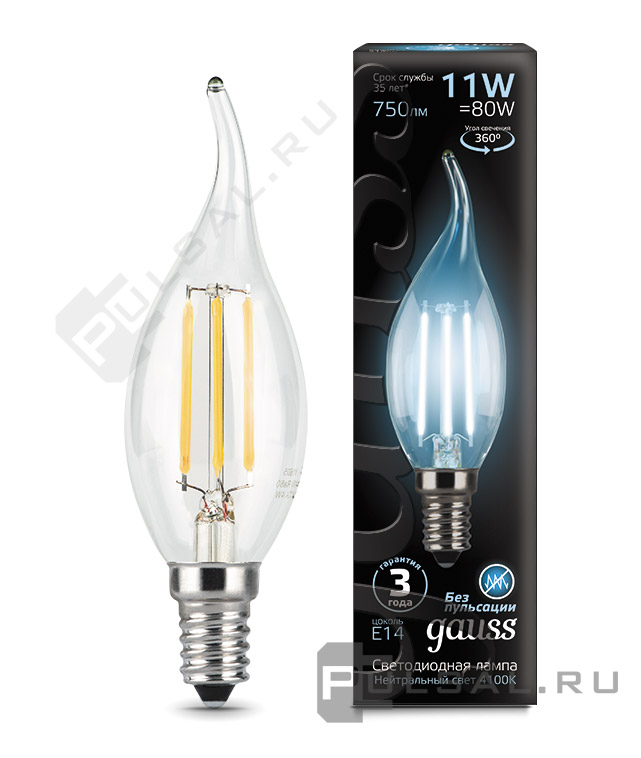 Лампа филаментная Black, цоколь - E14, мощность - 11Вт, световой поток - 750Лм, цветовая температура - 4100К, не диммируется, 104801211, Gauss