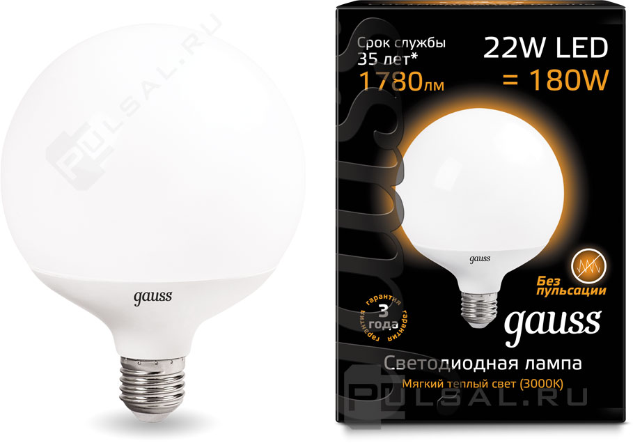 Лампа светодиодная Black, цоколь - E27, мощность - 22Вт, световой поток - 1780Лм, цветовая температура - 3000К, не диммируется, 105102122, Gauss