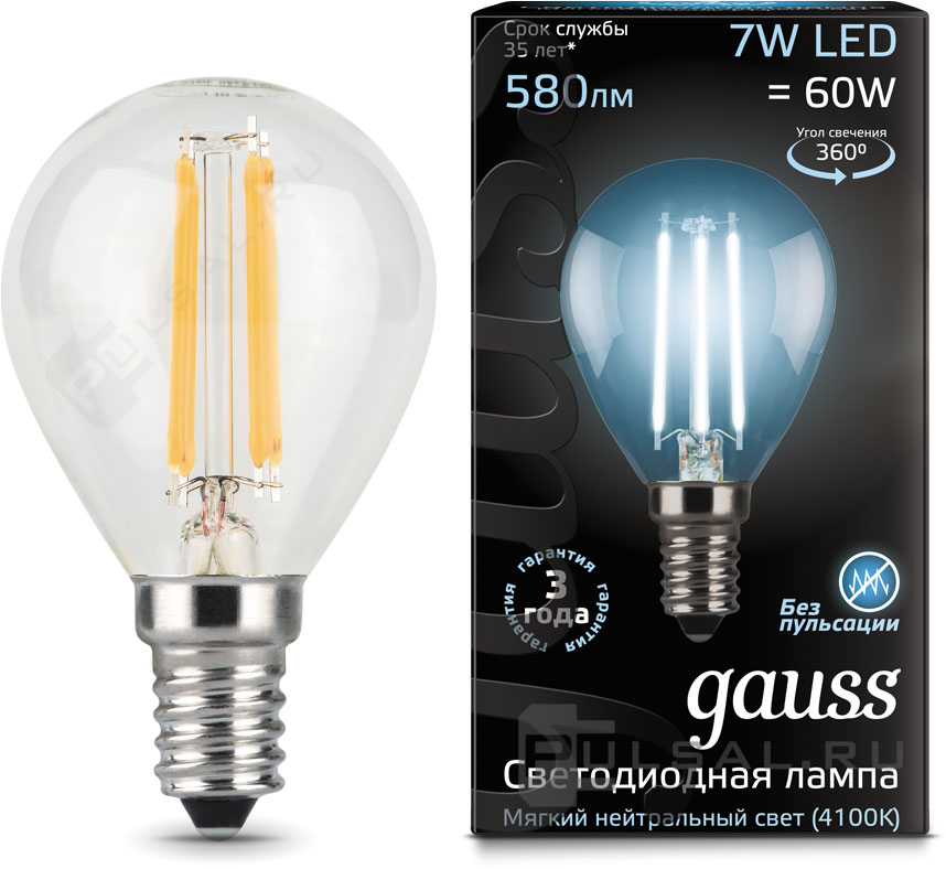 Black, цоколь - E14, мощность - 7Вт, световой поток - 590Лм, цветовая температура - 4100К, диммируется, 105101207-D, Gauss