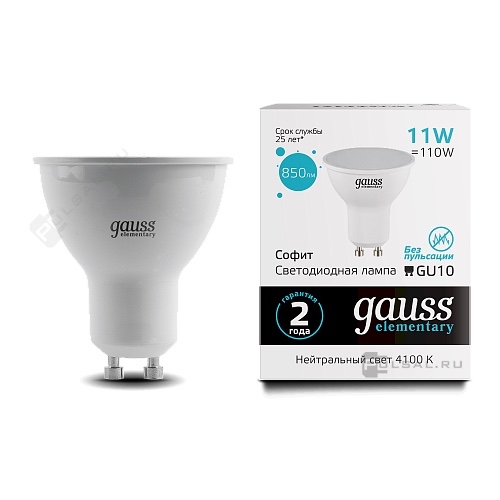 Elementary, цоколь - GU10, мощность - 5.5Вт, световой поток - 450Лм, цветовая температура - 4100К, не диммируется, 13626, Gauss