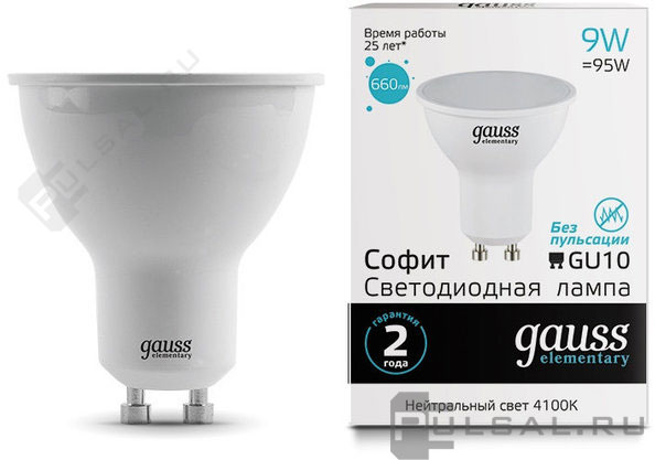 Elementary, цоколь - GU10, мощность - 5.5Вт, световой поток - 450Лм, цветовая температура - 4100К, не диммируется, 13626, Gauss