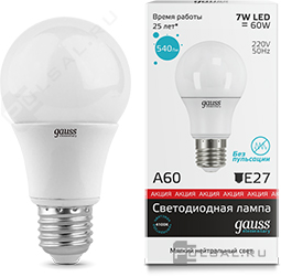 Black, цоколь - E27, мощность - 7Вт, световой поток - 550Лм, цветовая температура - 4100К, диммирование шаговое, 105102207-S, Gauss