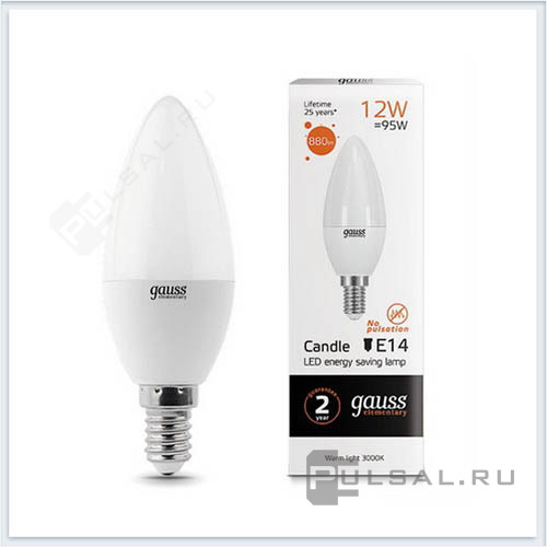 Лампа светодиодная Elementary, цоколь - E14, мощность - 12Вт, световой поток - 880Лм, цветовая температура - 3000К, не диммируется, 33112, Gauss