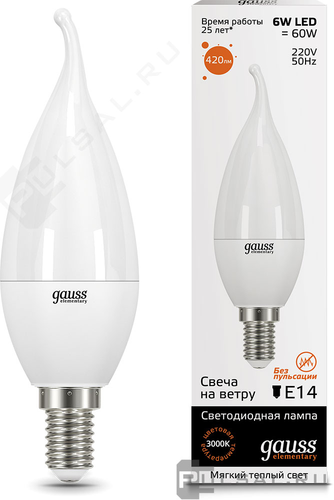 Elementary, цоколь - E14, мощность - 8Вт, световой поток - 520Лм, цветовая температура - 3000К, не диммируется, 34118, Gauss