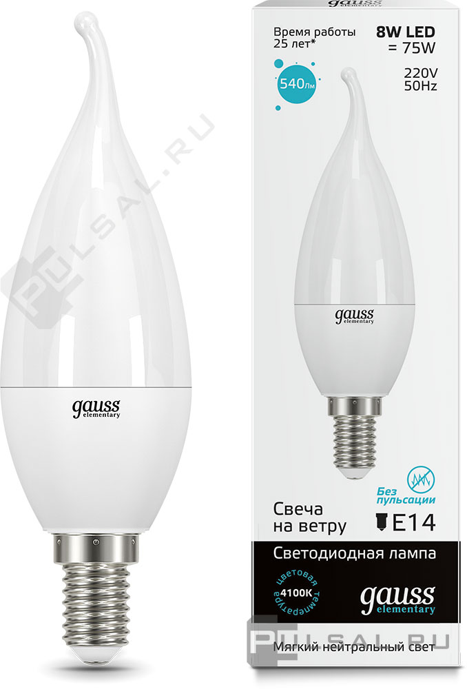 Elementary, цоколь - E14, мощность - 8Вт, световой поток - 540Лм, цветовая температура - 4100К, не диммируется, 33128, Gauss