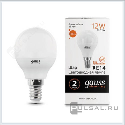Лампа светодиодная Elementary, цоколь - E14, мощность - 12Вт, световой поток - 880Лм, цветовая температура - 3000К, не диммируется, 53112, Gauss