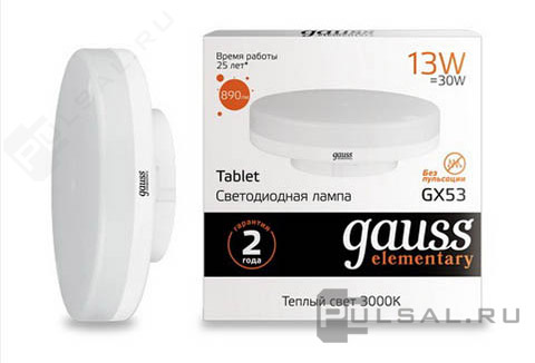 Elementary, цоколь - GX53, мощность - 6Вт, световой поток - 440Лм, цветовая температура - 2700Кцветовая температура - 3000К, не диммируется, 83816, Gauss