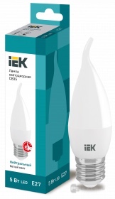 Лампы IEK, цоколь - E27, мощность - 5Вт, световой поток - 450Лм, цветовая температура - 4000К, не диммируется, LLE-C35-5-230-40-E27, IEK