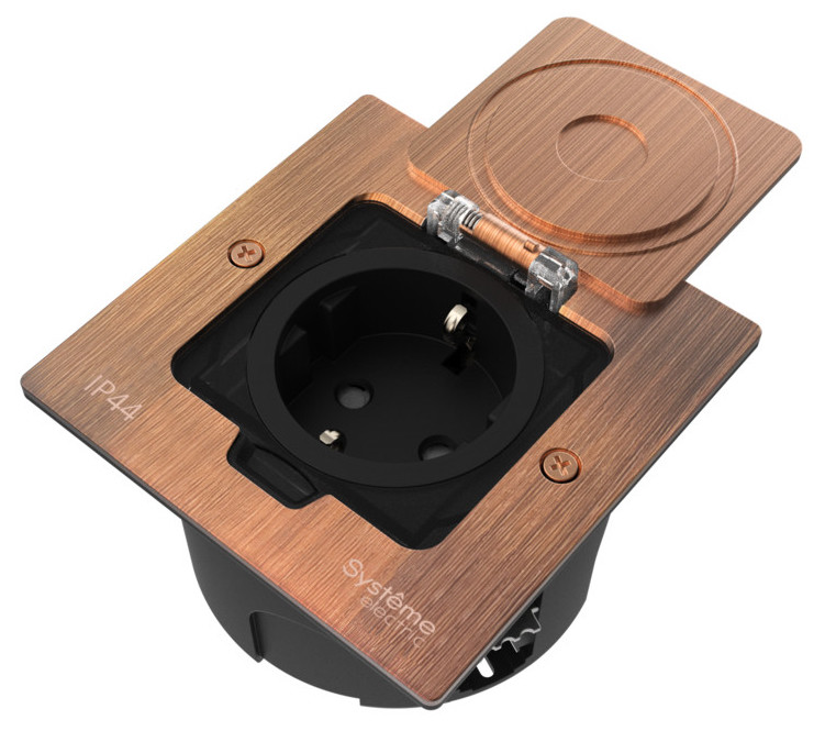 Лючок круглый в пол с установочным набором (без розеток) Лючки DFB, напольная, 2 модуля, цвет - золото