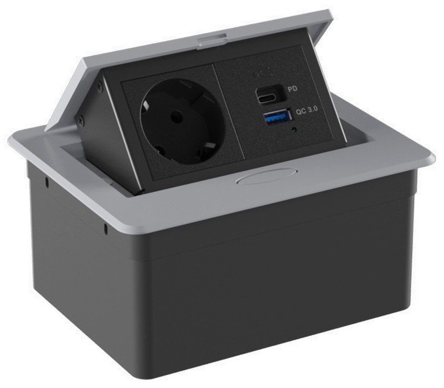 Настольный встраиваемый розеточный блок Static Лючки DDSB, для столов и мебели, 3 поста, 6 модулей, цвет - серебро