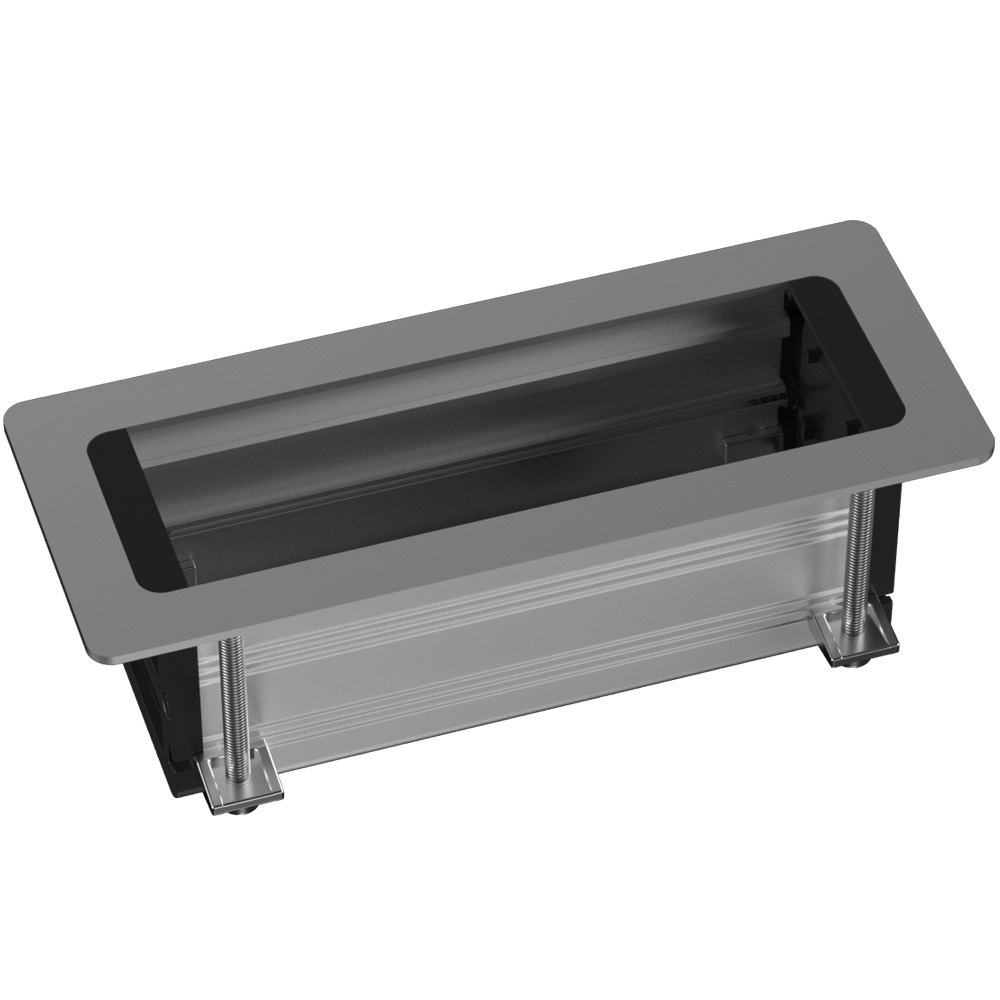 Настольный розеточный блок Ovaledesign (черные пластиковые торцевые заглушки) Лючки DDSB, для столов и мебели, 5 постов, 5+5 модулей, цвет - алюминий