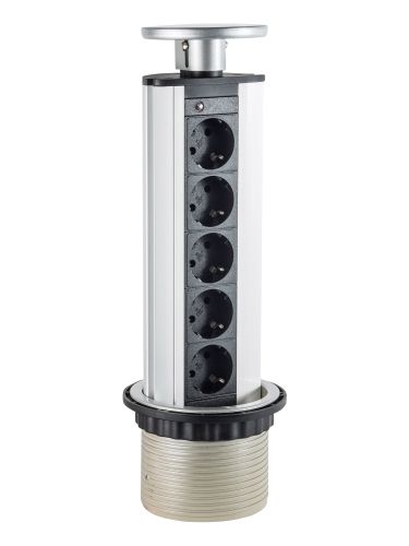 Настольный встраиваемый розеточный блок Static Лючки DDSB, для столов и мебели, 5 постов, 5+5 модулей, цвет - серебро