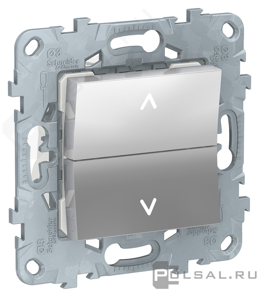 Выключатель для жалюзи кнопочный Unica New Pure, Unica New Studio, без фиксации, цвет - алюминий
