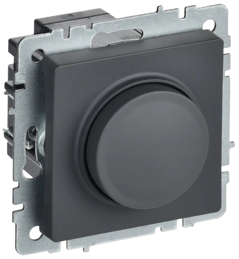 Светорегулятор (диммер) 6-600 Вт/ВА, для LED 3-200 Вт/ВА BRITE, поворотно-нажимной, с возможностью управления с 2-х мест, лампы накаливания и галогенные 220В (R), лампы с электронным (емкостным) трансформ.(C), диммируемые лампы LED 220В (LEDi тип C), цвет - графит