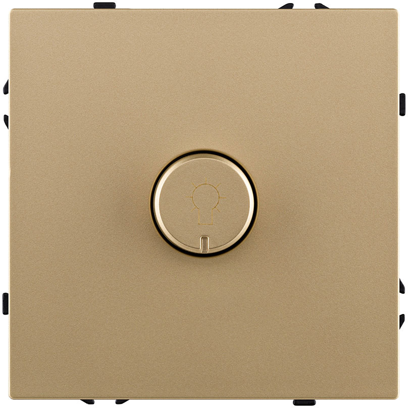 Светорегулятор для светодиодных ламп 5-200 Вт/ВА Eclipse, поворотно-нажимной, лампы накаливания и галогенные 220В (R), лампы с индукционным (обмоточным) трансформ.(L), лампы с электронным (емкостным) трансформ.(C), диммируемые лампы LED 220В (LEDi тип L), диммируемые лампы LED 220В (LEDi тип C), цвет - золотой