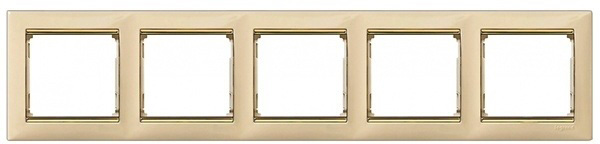 Рамка Valena, 2 поста, цвет - слоновая кость / золотой штрих, пластмасса