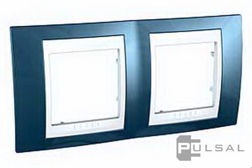 Рамка Unica Хамелеон, 2 поста, цвет - синий, белый, пластмасса