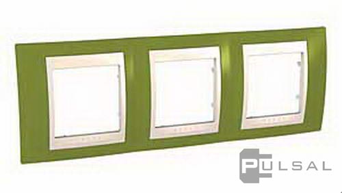 Рамка Unica Хамелеон, 3 поста, цвет - фисташковый, белый, пластмасса