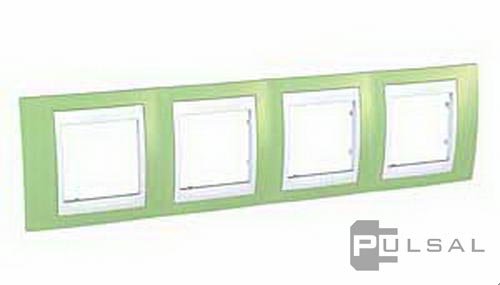 Рамка Unica Хамелеон, 4 поста, цвет - фисташковый, белый, пластмасса