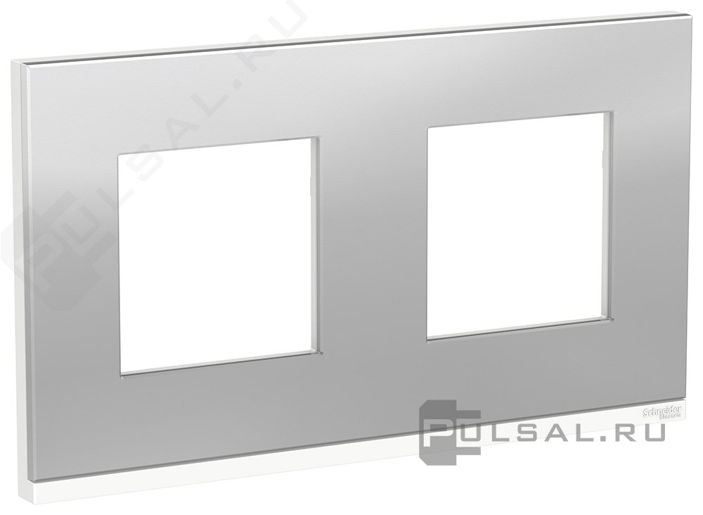Рамка Unica New Pure, 2 поста, цвет - алюминий матовый, белый, металл