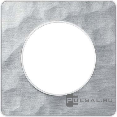 Рамка Odace, 1 пост, цвет - алюминий martele, белый, металл