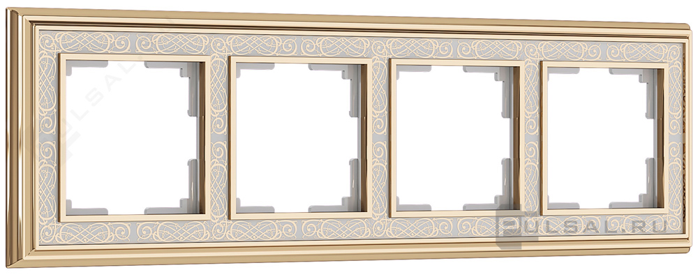 Рамкa Palacio, 4 поста, цвет - белый, хром, белый, металл