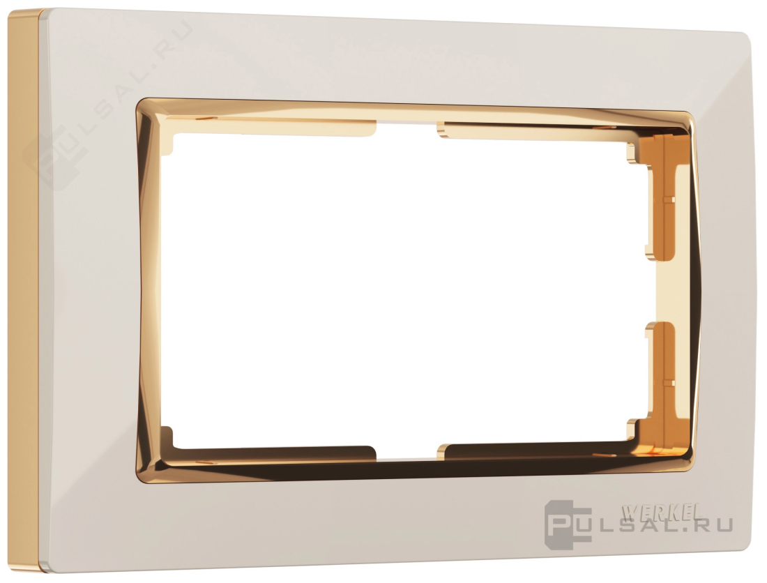 Рамка для двойной розетки Snabb, 2 поста без перегородки, цвет - слоновая кость, золото, пластмасса
