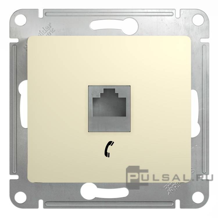Розетка телефонная RJ11 Glossa, одинарная, цвет - бежевый