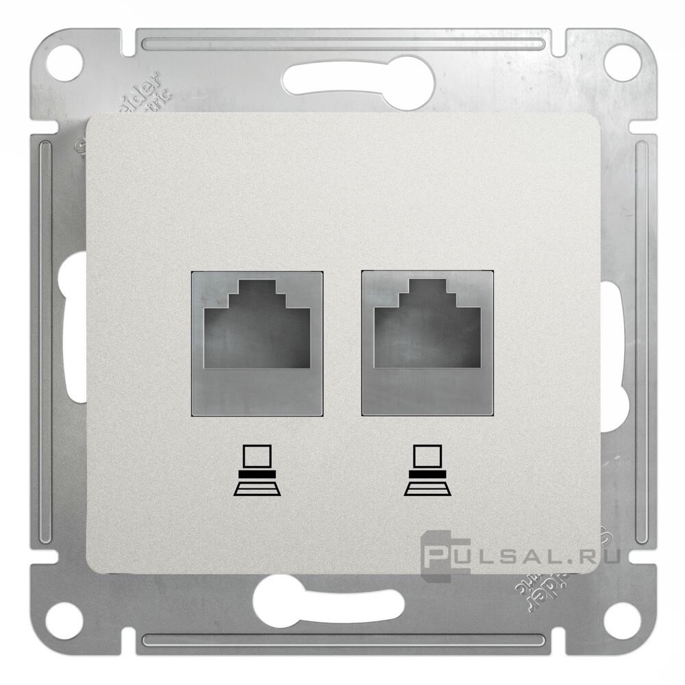 Розетка компьютерная RJ45 Cat.5e (UTP) Glossa, одинарная, цвет - перламутр