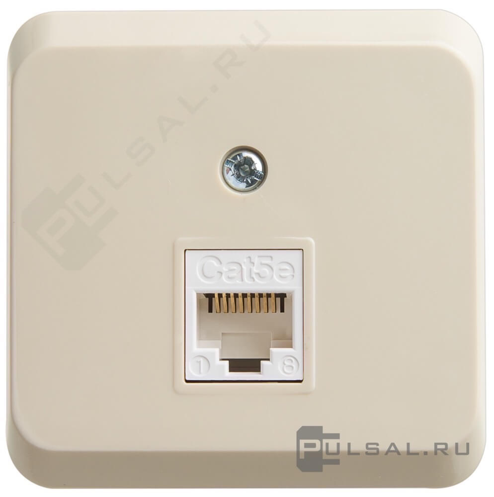 Розетка компьютерная RJ45 Cat.5e Этюд, одинарная, цвет - кремовый