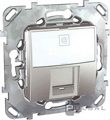 Розетка телефонная RJ11 Unica Quadro, Unica Top, Unica Class, одинарная, цвет - алюминий