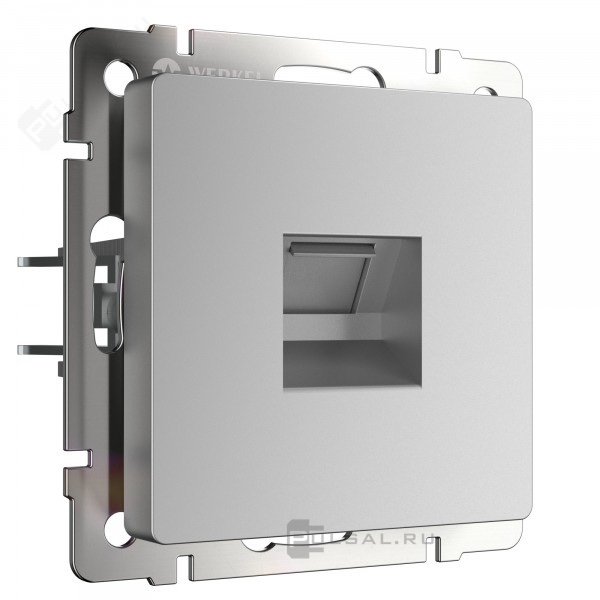 Розетка компьютерная RJ45 Кат.5е UTP Alumax, Split, Slab, Senso, Baguette, Acrylic, Platinum, Elite, Snabb, Stream, Flock, Stark, Fiore, Favorit, Diamant, Aluminium, Antik, Metallic, одинарная, цвет - серебряный