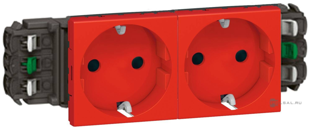 Розетка Mosaic, DLP, DLP floor, DLP IP 44, DLP IP 40, без шторок, с заземлением, одинарная, безвинтовые клеммы, цвет - красный