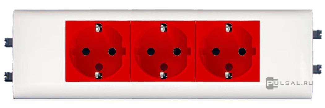 Розетка с механической блокировкой Mosaic, со шторками, с заземлением, тройная, безвинтовые клеммы, цвет - красный