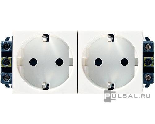 Розетка Mosaic, со шторками, с заземлением, двойная, безвинтовые клеммы, цвет - белый